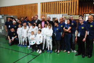… merci à tous et en particulier les bénévoles ( on a vu des tee shirts bleu et jaune partout pendant 2 jours de compétition) , Eric Viseur et ses arbitres, nos partenaires, la Ville de Compiègne , le Conseil Départemental de l’Oise, le Comité Départemental d’Escrime de l’Oise , la Ligue de Picardie et … Stephane Goudin, le petit fils de Georges Tainturier