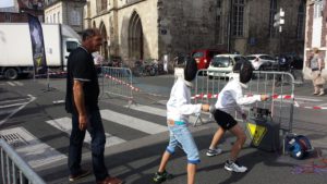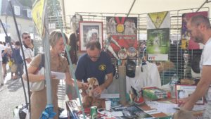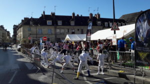 Une journée dense avec la mise en place du stand et accueil des visiteurs, le « cours » de 10h sur le lieu du Forum, la demonstration sur le podium, les assauts et essais toute la journée.