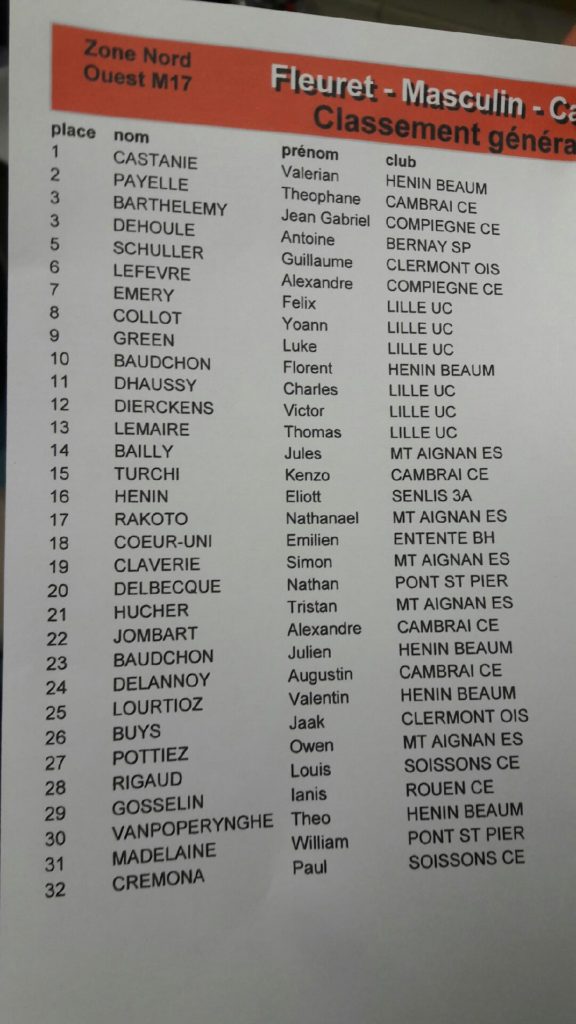 JG 3ème Epreuve Zone Fleuret M17 – Alex 6ème – Belles performances !