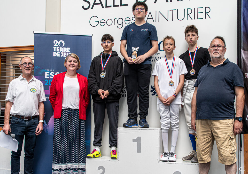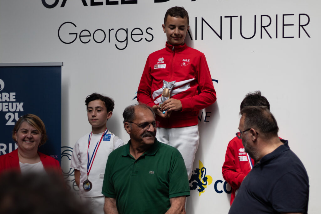 Très belle prestation d’ensemble de tous nos fleurettistes (22 !) , avec aussi les 3emes places de Timothée (M9), Emmy (M11), Elen (M13), Foulques (M13) et Ilie (M15)